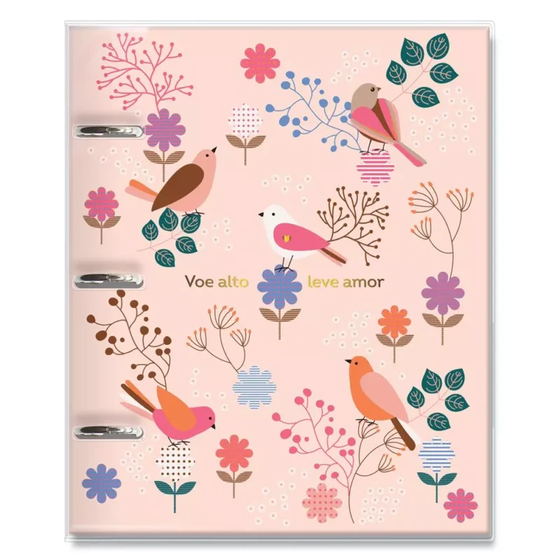 Caderno com ferragem 3 argolas, capa dura, com 12 divisórias formato 17,6 cm x 23,2 cm em papel offset resistente e cores superlindas, e o lado de trás tem espaço para você escrever ou desenhar o que quiser. Miolo no formato 16,5 cm x 23,2 cm com 80 folhas em papel offset 90 g, sendo 50 pautadas e 30 decoradas. Acompanha cartela de adesivos, envelope resistente para documentos, capa protetora transparente e um lindo marcador de páginas.